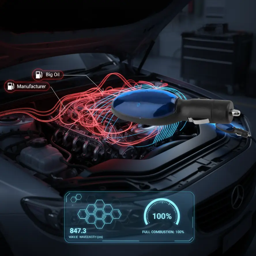 FuelCharge™ sendet präzise elektromagnetische Wellen mit einer Frequenz von 847,3 Nanometern, die diese Störungen neutralisieren und die Kraftstoffverbrennung wieder auf 100 % bringen, genau so, wie Ihr Auto ursprünglich gebaut wurde, bevor dieses teure System installiert wurde.